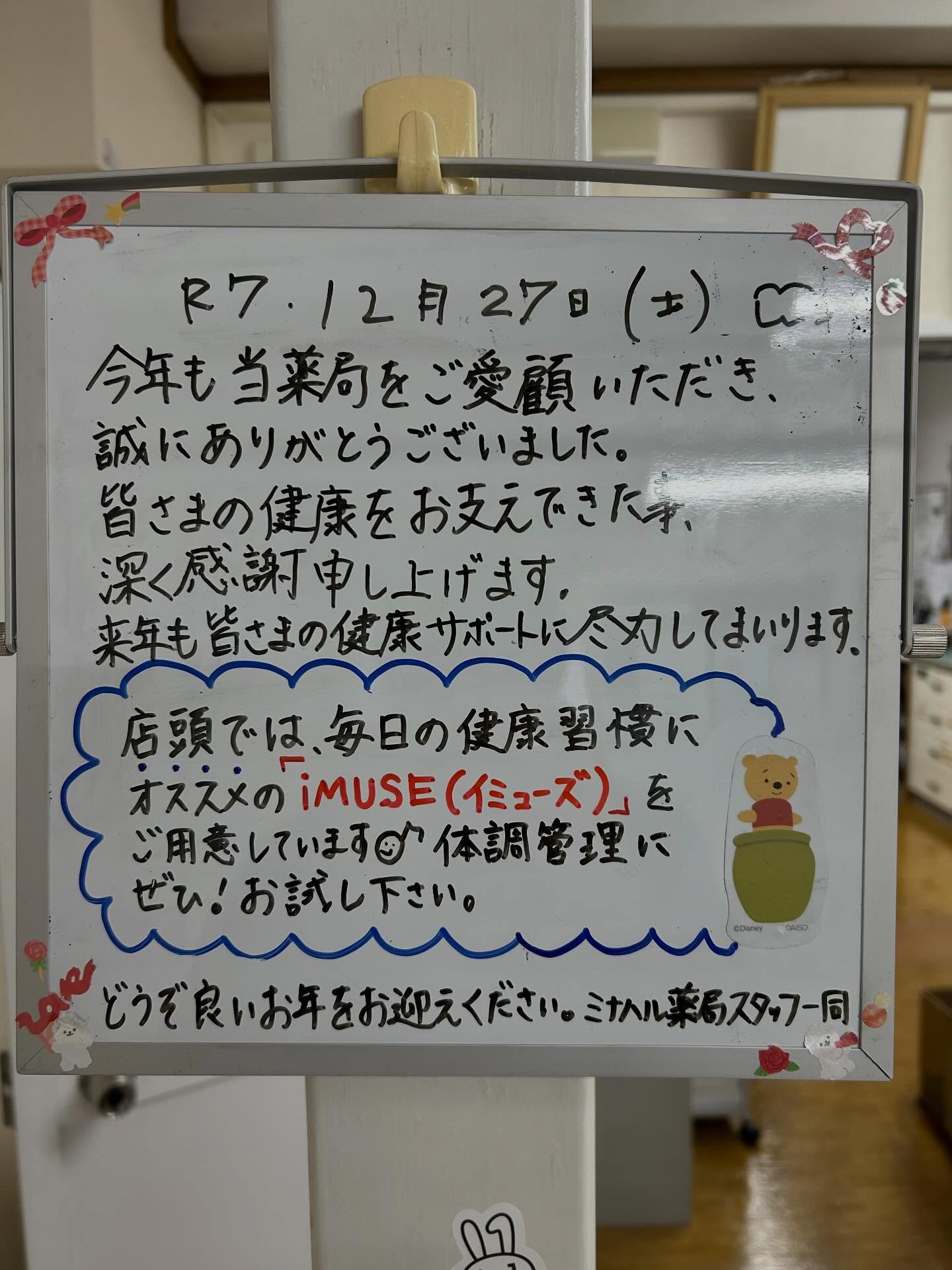 ミナハル薬局は2025/12/28〜2026/1/4までおやすみをいただきます。